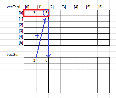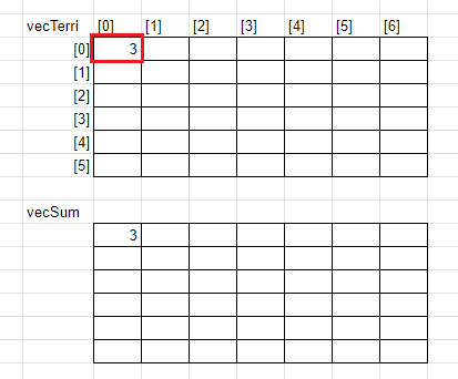 vecTerri[0][0] 일 때 누적값은 (값이 한 개밖에 없으므로) 당연하게도 3이다.