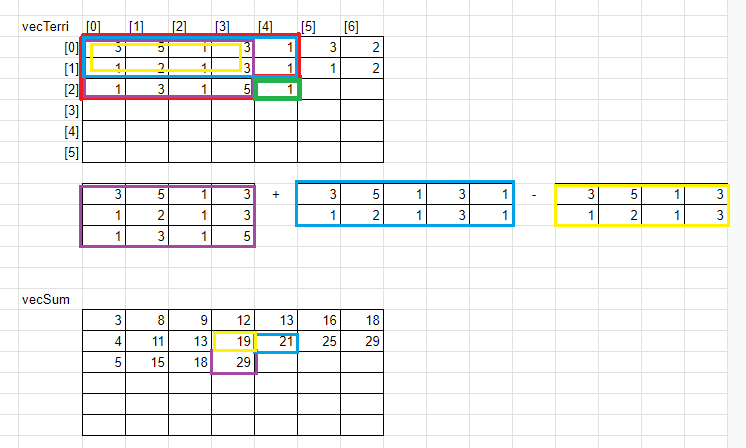 vecSum[i][j] = vecSum[i][j - 1] + vecSum[i - 1][j] - vecSum[i - 1][j - 1] + vecTerri[i - 1][j - 1];